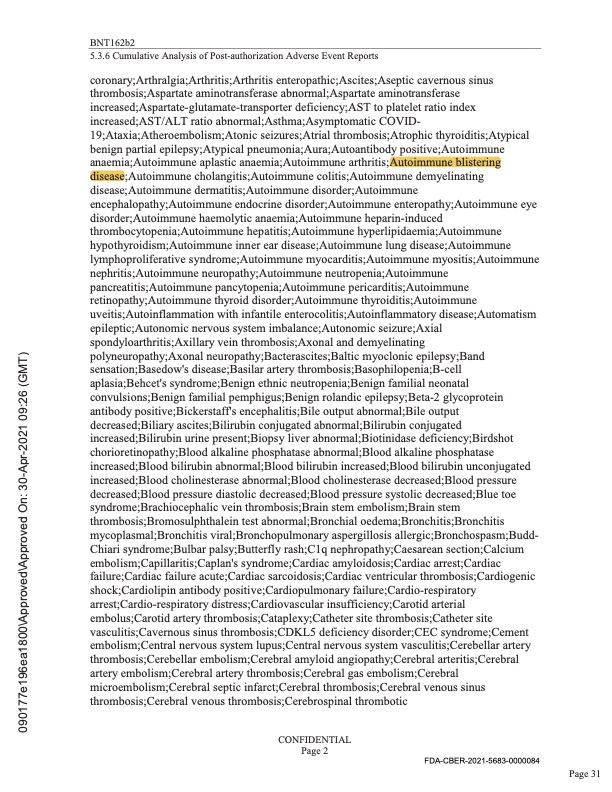 Great article that covers current events from an alternative perspective. I’m sure the mainstream media will be calling Pfizer a conspiracy theorist for including this condition in their adverse reactions report. 😉
