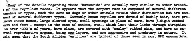 Information on this comes from whistleblowers from the SSP who interact with Reptilians in their natural form , and particularly Karl Mollison .